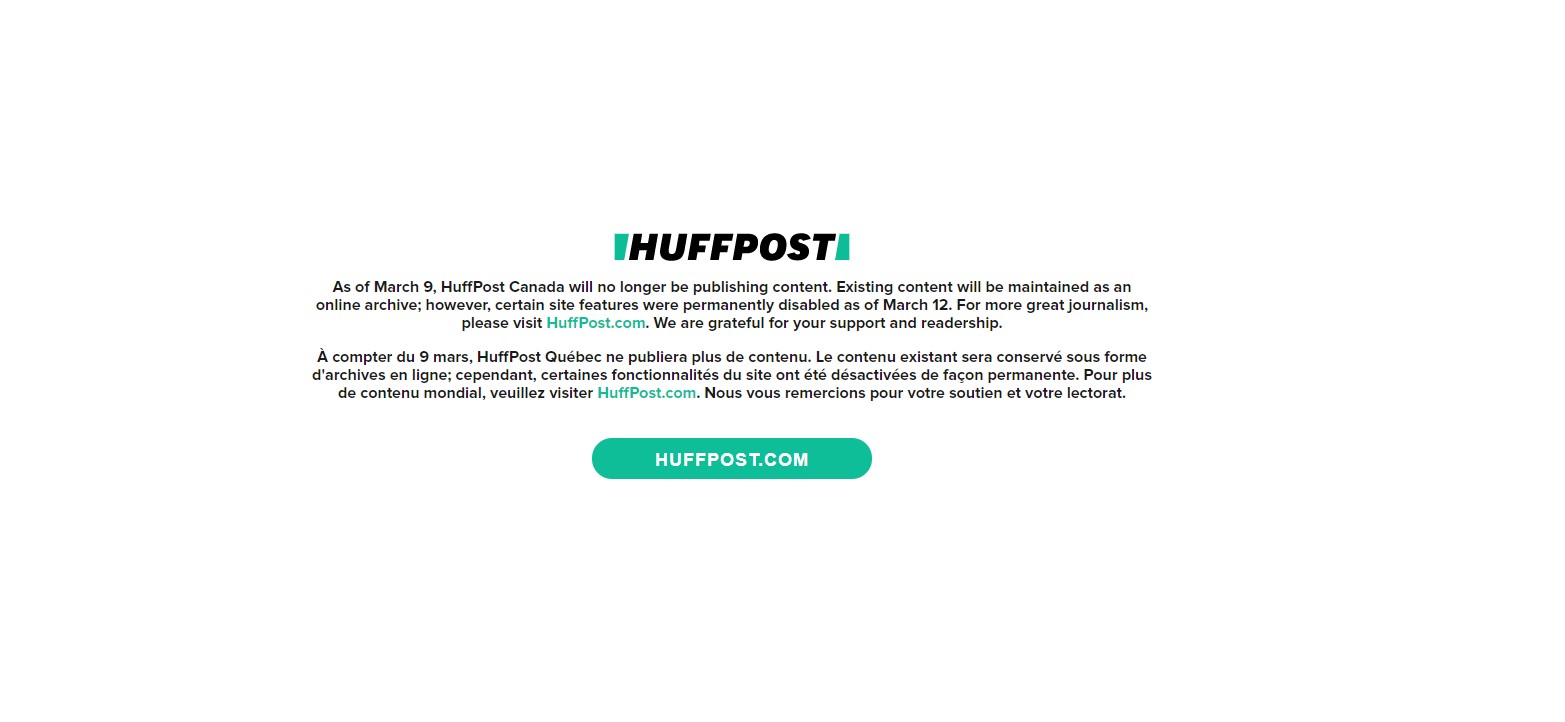 My blog is about print. It is about celebrating creativity and innovation in print journalism as cuts imperil its future. But as a 20-year journalism vet who has seen and experienced many layoffs, and survived, I feel it is incumbent on me to honour those who are facing cuts right now. It was announced today that HuffPost Canada and HuffPost Quebec are shutting down, cutting 23 jobs. The employees filed for union certification in February, just two weeks ago. So this sort of goes against what this blog stands for, being always positive, but this is a big deal. And the positivity comes in celebrating the great work by this staff over the years.