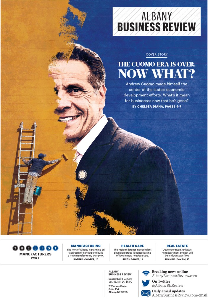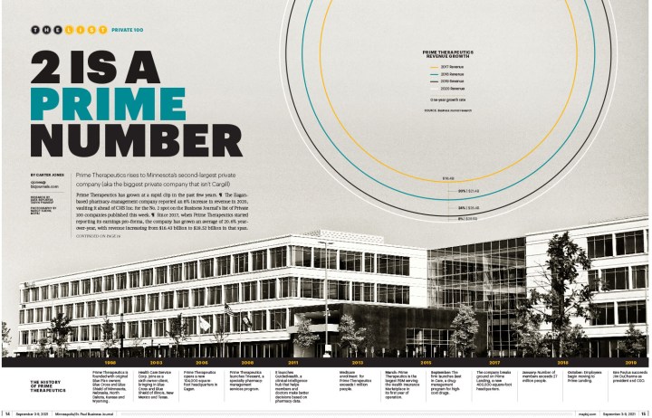 Here is a selection of pages from The Business Journals. They had a number of winners. They are doing such smart things with illustrations and text. The text on the first page is both understated and bold at the same time! Small, but reverse white on red with a touch of transparency.