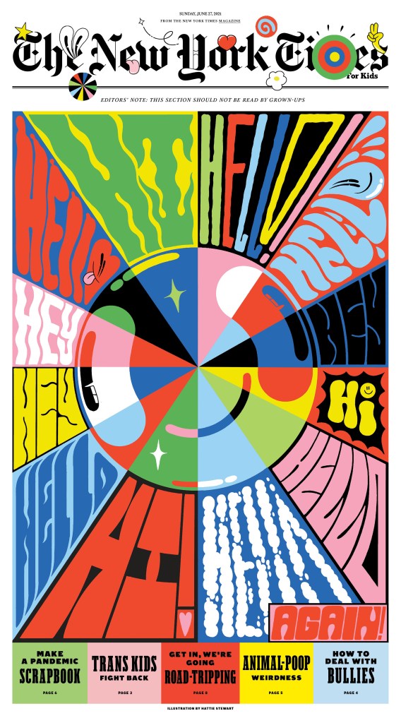 What can I say about the New York Times. It’s funny that it’s known as the Gray (Grey) Lady. Because once you get past that iconic grey cover (much less grey than it once was), and past the news section, it’s a marvel. Design beyond most designers’ wildest imaginations. The kids section alone is a masterpiece. Truly brilliant.