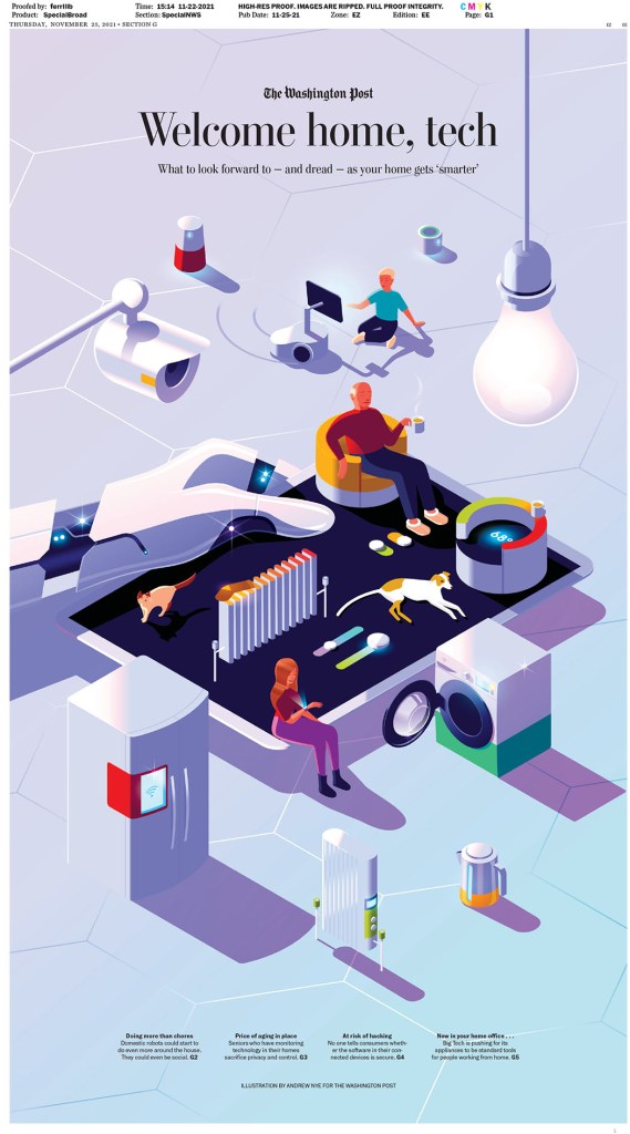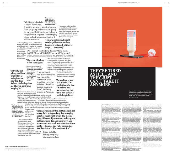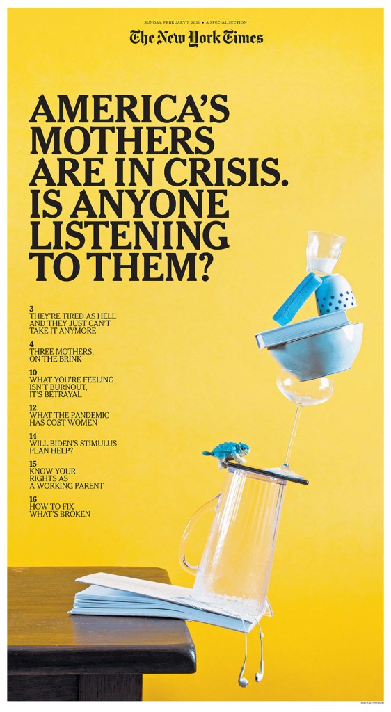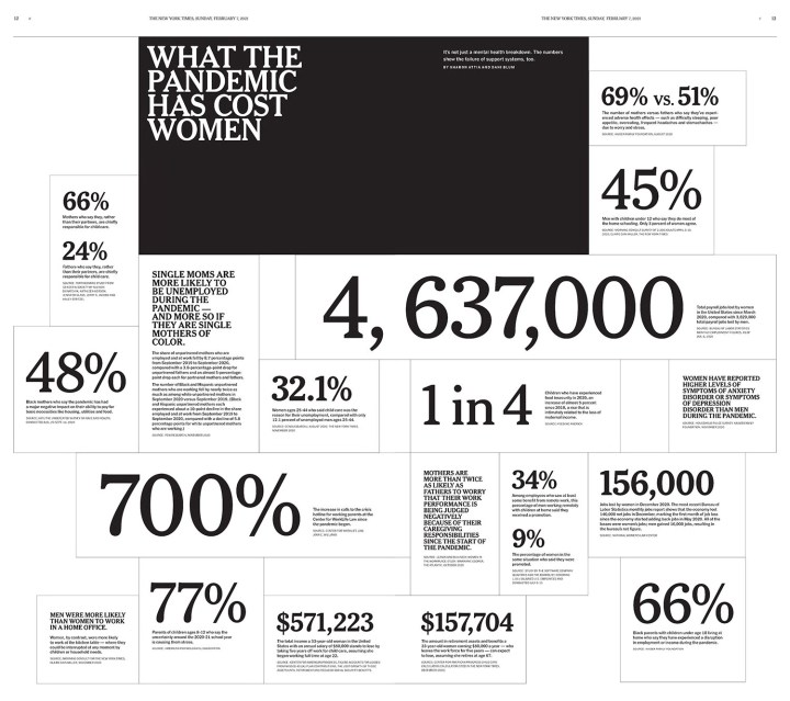 There were so many jaw-dropping pages from NYT, so this is truly just a snapshot of the work they produce. There were some I couldn’t do justice to as it would require seeing the entire section. I have included four pages from a section about the struggle of mothers because of the subject matter, and because of the judges’ comments. The section, they believe, is designed in a way intended to make you uncomfortable. It’s far from a standard design. It is jarring. I am so envious. If they are ever looking to hire a designer with a Canadian perspective, feel free to reach out. I accept. In a twist, the one A1/front page I included is so strong because it’s grey. I wrote an entire post about it when it came out in early 2021. The first two pages in the slideshow is two of my faves from the competition. I love little pictures. And the god page is boldly and smartly done.